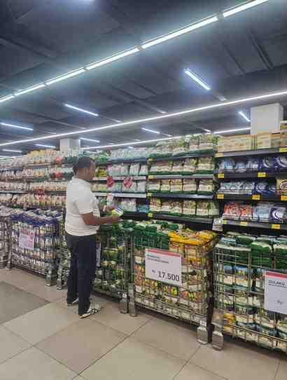 Di Lottemart Green Pramuka, beras premium dijual Rp14.900/kg, daging sapi segar Rp140.000/kg, daging kerbau beku Rp124.900/kg, daging ayam ras Rp34.900/kg, telur ayam ras Rp30.000/kg, bawang merah Rp41.500/kg, bawang putih Rp38.000/kg, dan gula konsumsi Rp17.500/kg. Cabai rawit merah tercatat Rp57.000/kg dengan keterangan stok kosong.