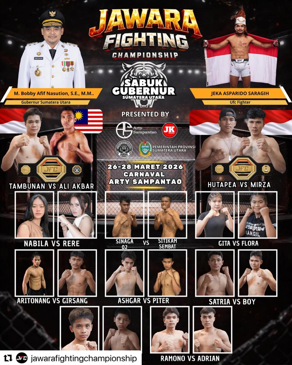 Sebelumnya, Kepala Dinas Kepemudaan dan Keolahragaan (Kadispora) Provinsi Sumatera Utara, M Mahfullah Pratama Daulay SSTP MAP membuka dengan resmi Karate Open Tournament & Festival Tahun 2026 Piala Kadispora Sumut yang digelar di Martial Arts Arena Dispora Sumut, Jumat (10/4).